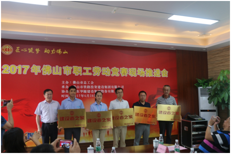 为大力推进全市重点工程劳动竞赛,激发广大职工的建设热情,助力推进全市重点工程建设,6月28日上午,由市总工会主办、市铁投集团承办的“2017年佛山市职工劳动竞赛现场推进会”在佛山城市轨道交通三号线工程3204-1标项目部会议室举行,市劳动竞赛委员会副主任、总工会副主席杨玉瑞,铁投集团纪委书记、工会工作分管领导刘鹏杰,以及各区总工会分管主席及业务科室负责同志、市级职工技能竞赛项目承办单位代表、市级重点工程劳动竞赛组织单位和参建单位代表共约70人出席。