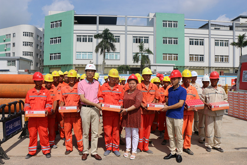 8月8日上午,市总工会副调研员曹文平带队来到佛山地铁三号线工程狮山站、罗村站建设工地,进行了送清凉慰问及调研检查,佛山铁投集团纪委书记、工会主席刘鹏杰陪同。慰问组送上一批王老吉、菊花茶、清凉茶等清凉饮料及劳动保护应急包给奋战在高温作业一线的工作人员。