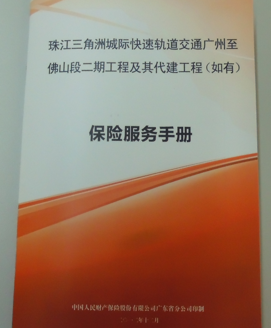 佛山轨道公司加强保险服务意识编发广佛线二期工程保险服务手册