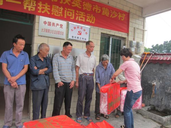 9月29日,在国庆节来临之际,在铁投集团党委办的组织下,党委副书记、纪委书记潘婉文率队到英德市大洞镇黄沙村,开展新一轮的扶贫开发“双到”工作,为帮扶贫困户送上节日的慰问。