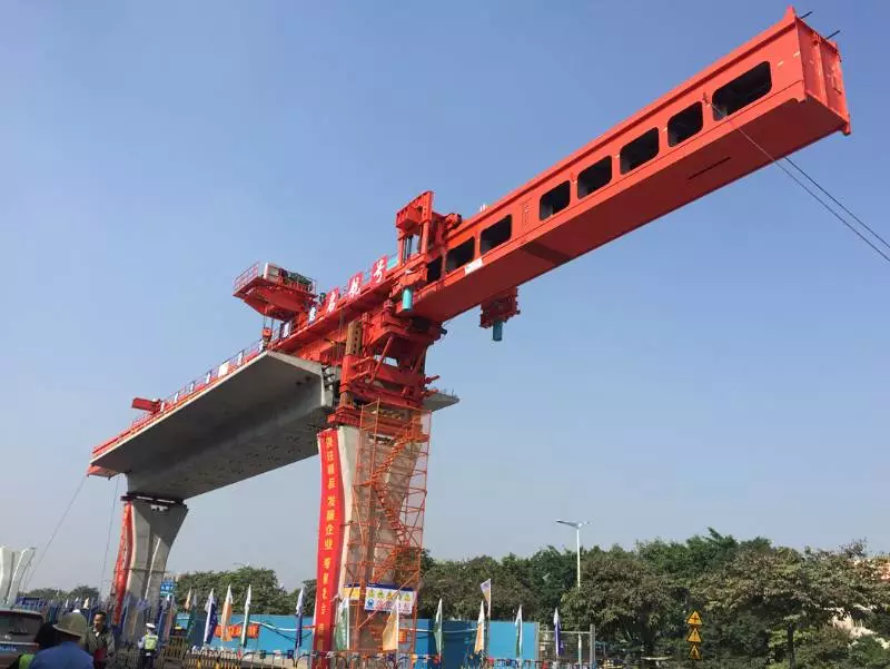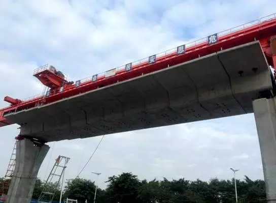 昨日,记者采访中了解到,在架设2号线高架段时,施工方必须将每榀重达40多吨的梁吊起10多米,并拼接成一孔30米(12榀)的节段梁,整块节段梁重超400吨。为此,施工方从湖北特别用三个月的时间,定制了一台名叫“启航号”的架桥机,该机全长72.13米,重达262吨,有2台250吨的落梁天车和一台80吨起重天车等。当它被预先安装在了桥墩顶上后,它将像一只“毛毛虫”一样向前挪动,铺好一块又一块的箱梁。