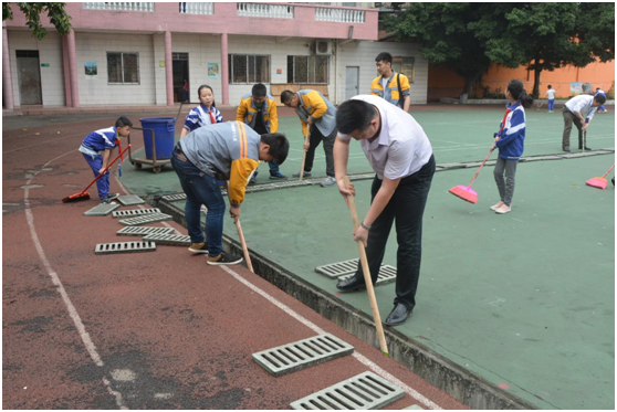 经过近三个多小时的清扫,道路被打扫干净,操场边缘、排水沟等日常很难清理到的卫生死角也都得到了有效清理。