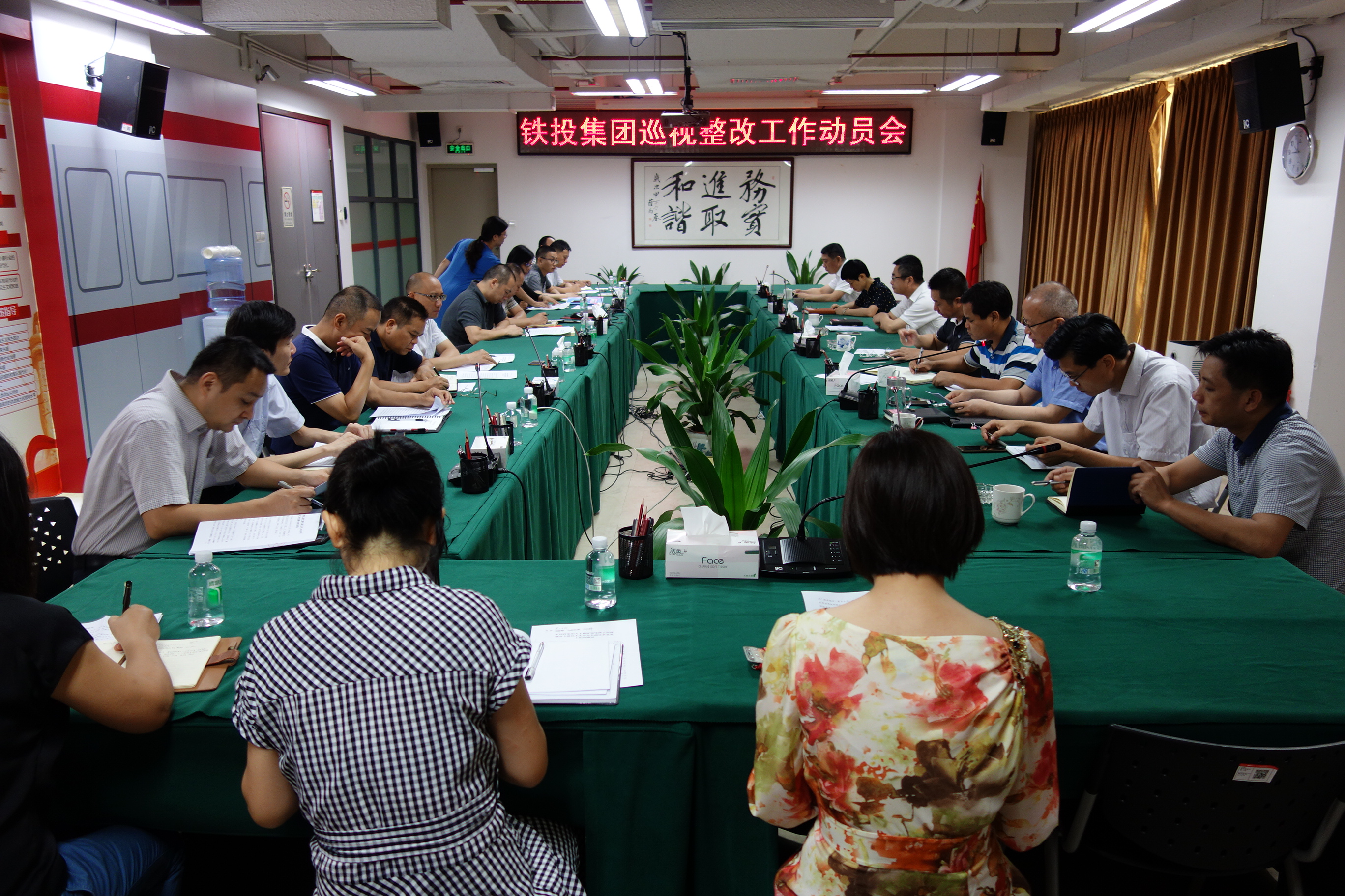 为全面贯彻巡视整改工作要求,集中力量部署巡视整改工作任务, 8月9日上午,佛山铁投集团党委召开了巡视整改工作动员会。佛山铁投集团党委书记、董事长胡拯民做动员讲话,党委副书记、总经理孙钟权作巡视整改工作部署,公司领导班子成员、各部门及子公司的相关负责人参加会议,会议由党委副书记卢宁主持。