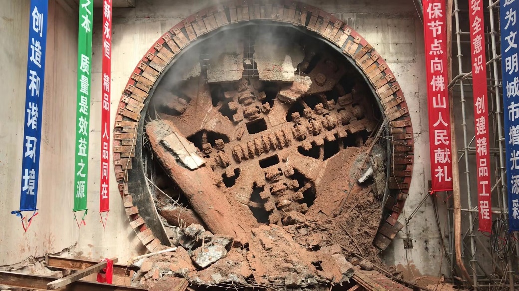 12月15日上午11时,在“天佑6号”盾构机刀盘转动的轰鸣声中, 佛山地铁三号线工程太平站~狮山站盾构区间左线顺利贯通。